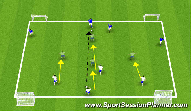 Station 2 SSG game where teams attack 2 goals that are situated in the corners. (see Figure 1)